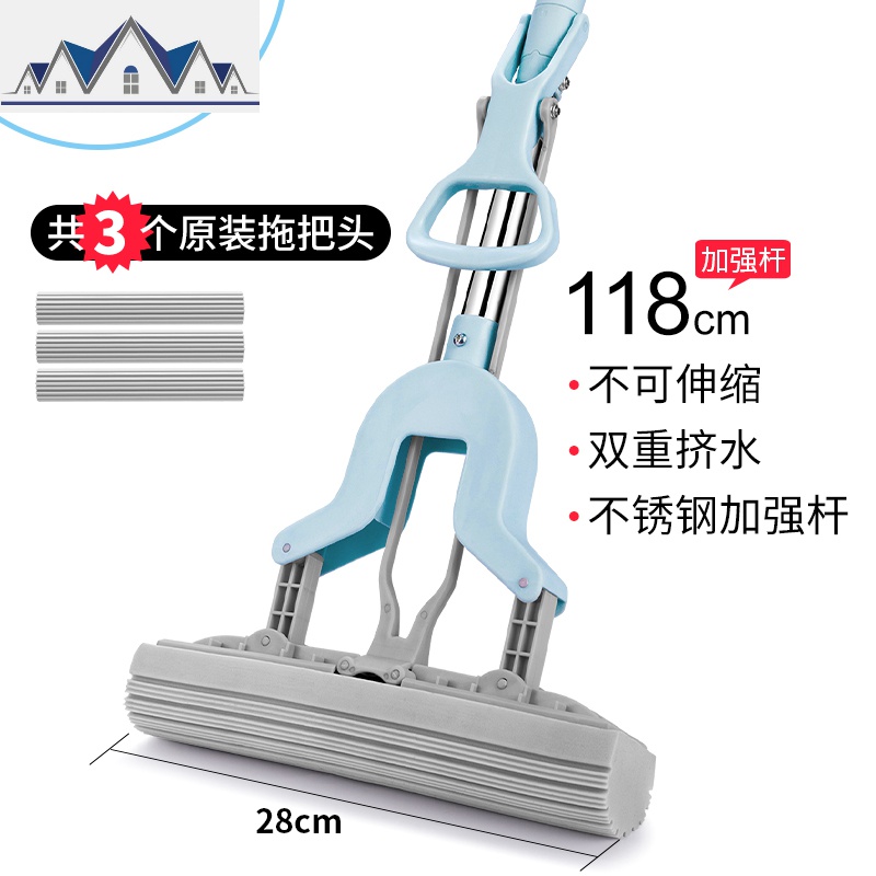 吸水拖把对折式挤水海绵拖布一拖家用胶棉头干湿两用地拖净免手洗_352 28cm共3个头/不锈钢豪华加强杆¥52.00热销中 -