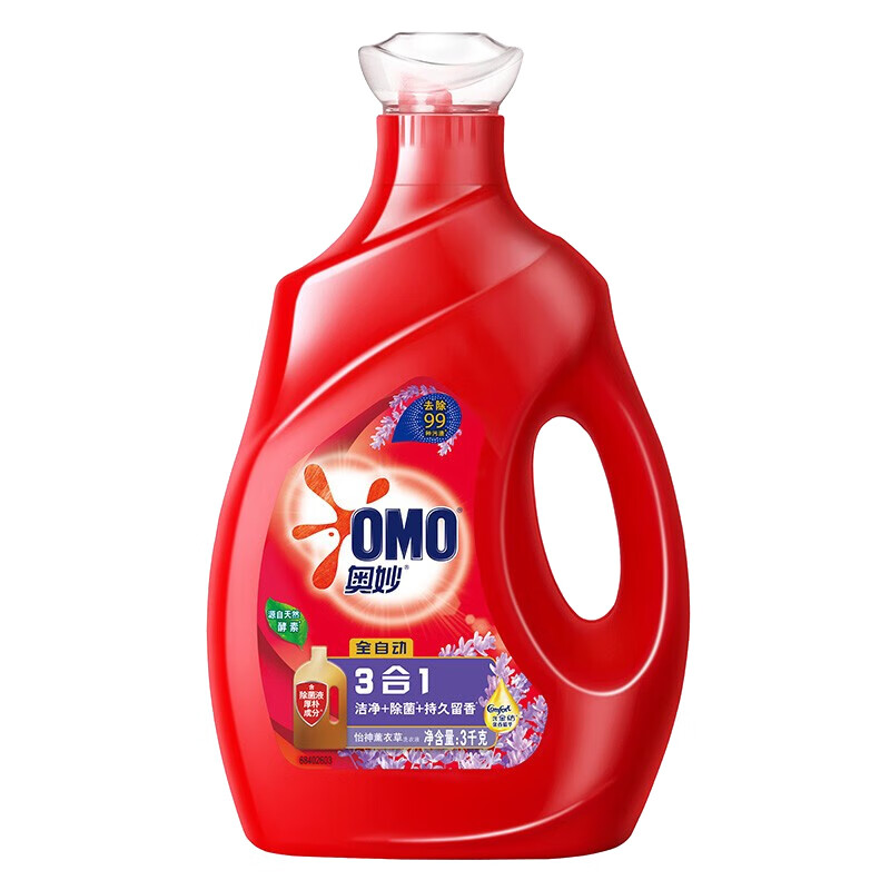 奥妙全自动薰衣草洗衣液含金纺浓缩天然酵素3kg瓶装 除螨抑菌 清洁护衣 持久留香