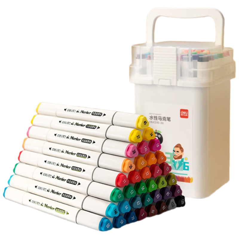 自营 得力(deli)36色食品级水性马克笔儿童粗细双头三角杆可水洗水彩笔学生美术画笔荧光笔水彩笔美育¥30.96热销中 -