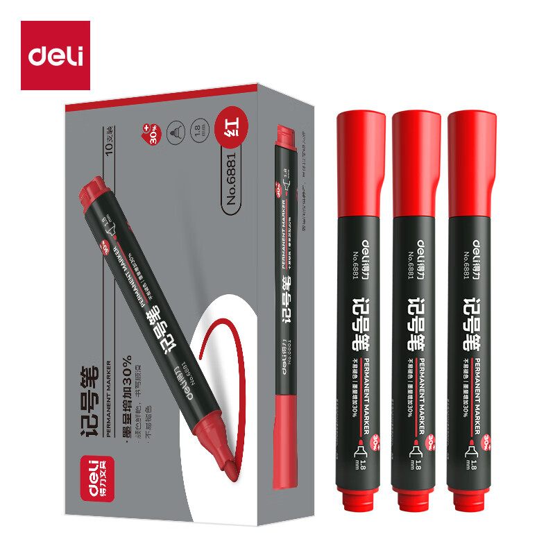 自营 得力(deli)粗头油性记号笔大头笔 物流家庭快递签字办公马克笔墨量升级30%学生文具 10支/盒 红色 P06881¥8.80热销中 -