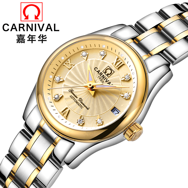 瑞士嘉年华CARNIVAL手表 新款全自动机械表 女士日历夜光防水女表休闲时尚商务手表金属精钢表带品牌女神表183-女款 间金金面新款¥398.00热销中5评价 100.0%好评 -