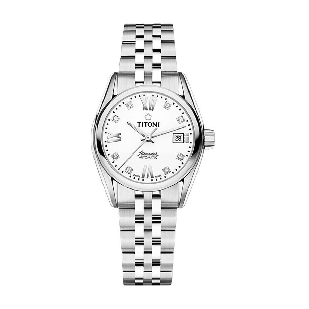 自营 Titoni瑞士梅花表女表空中霸王系列自动机械表罗马表钢带手表 23909S-063¥6550.00热销中 -