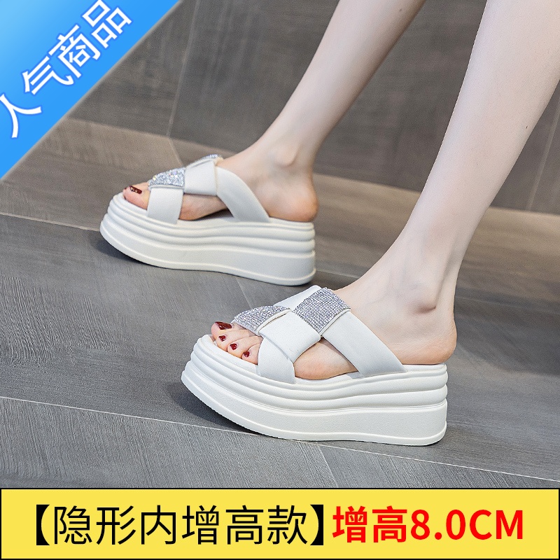 SUNTEK厚底内增高凉拖鞋女2023夏季新款松糕坡跟小个子外穿时尚水钻凉鞋 米色 36¥122.00热销中 -