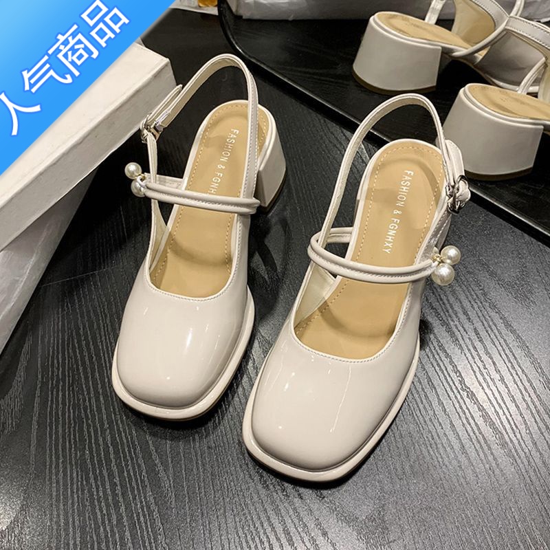SUNTEK法式包头单鞋女2023款夏季新款仙女风高跟凉鞋粗跟玛丽珍女鞋夏 米色.& 35¥100.44热销中 -
