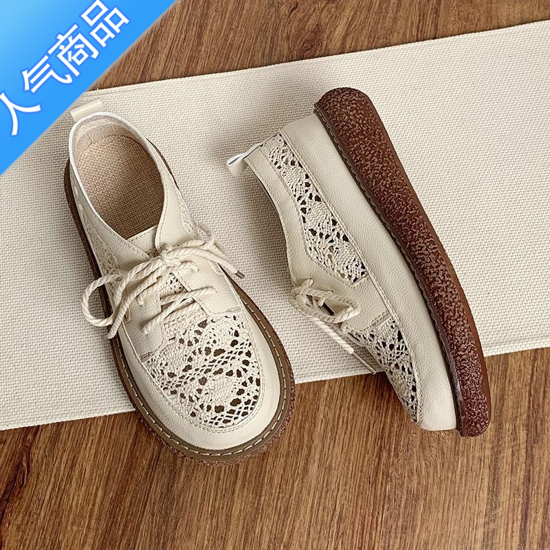 SUNTEK软底森系小众网鞋镂空透气棉麻包头凉鞋女厚底夏季新款学生大头鞋 米白色 36¥89.82热销中