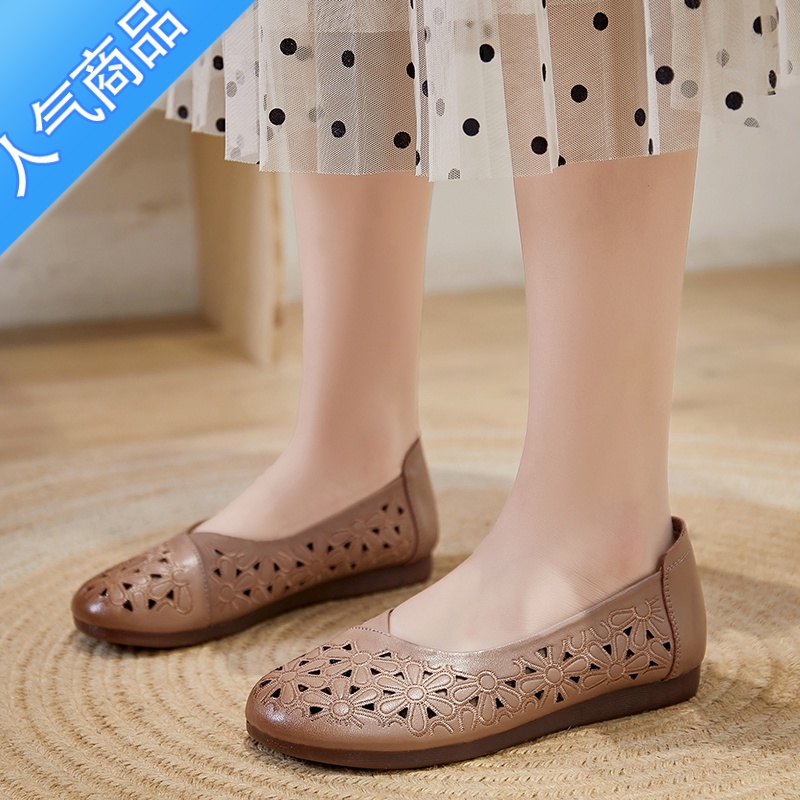 SUNTEK2023夏季新款头层复古风女凉鞋镂空透气休闲妈妈凉鞋平底女鞋¥142.20热销中 -
