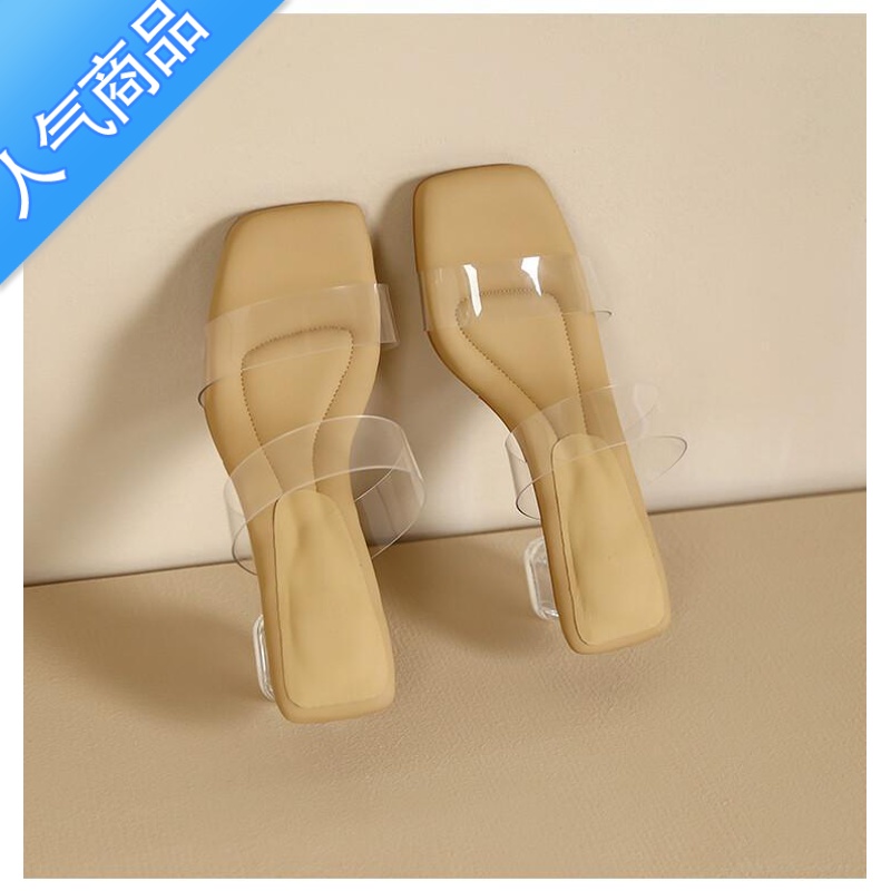 SUNTEK踩屎感透明凉鞋女2023夏季新款配裙子一字带水晶高跟凉拖鞋女外穿 卡其色 35¥85.00热销中 -