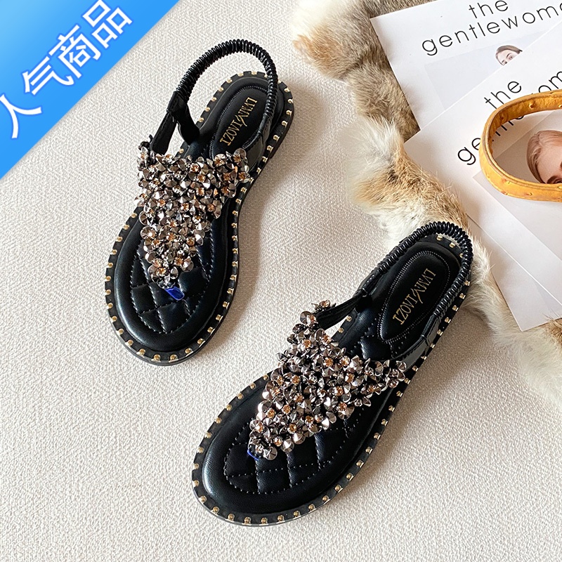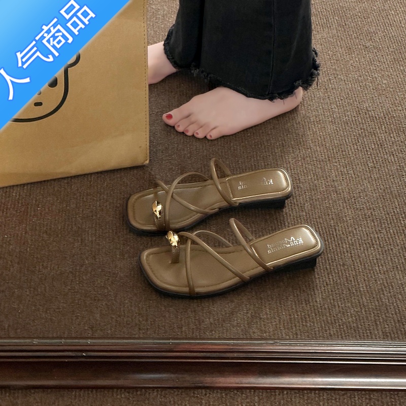 SUNTEK法式高级感细带夹趾罗马鞋2023年新款夏季平底粗跟仙女风绝美凉鞋¥142.20热销中 -