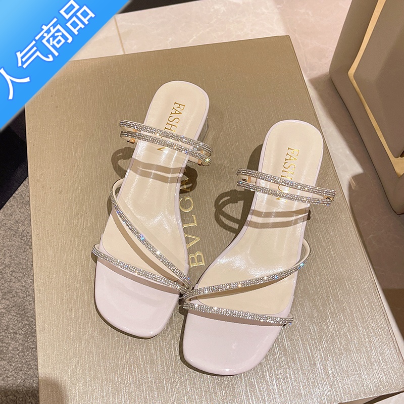 SUNTEK法式晚风凉鞋女2023年新款夏季外穿拖鞋水钻仙女风两穿粗跟凉拖鞋 米白色 38¥53.64热销中 -
