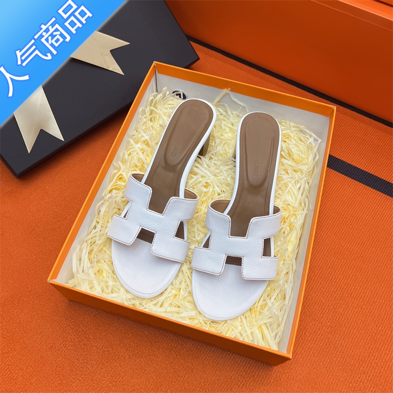 SUNTEK铆钉尖头高跟鞋女细跟2023夏季新款包头一字带凉鞋百搭女士半拖鞋 白色亮光中跟8cm 41¥302.00热销中 -