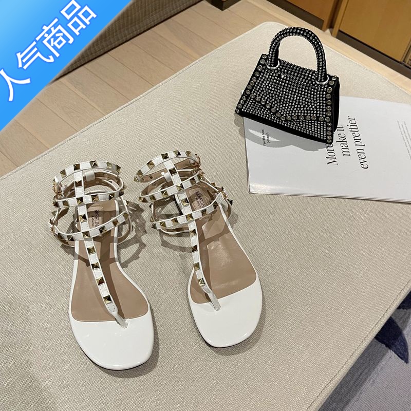 SUNTEK配裙子平底凉鞋女2022夏季新款时尚仙女风铆钉一字扣带夹趾罗马鞋 白色 35¥140.40热销中 -