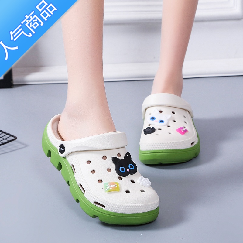 SUNTEK洞洞鞋女夏季外穿2023年新款沙滩网红防滑两穿凉鞋女款包头凉拖鞋 739白绿+黑白猫 37¥106.20热销中 -