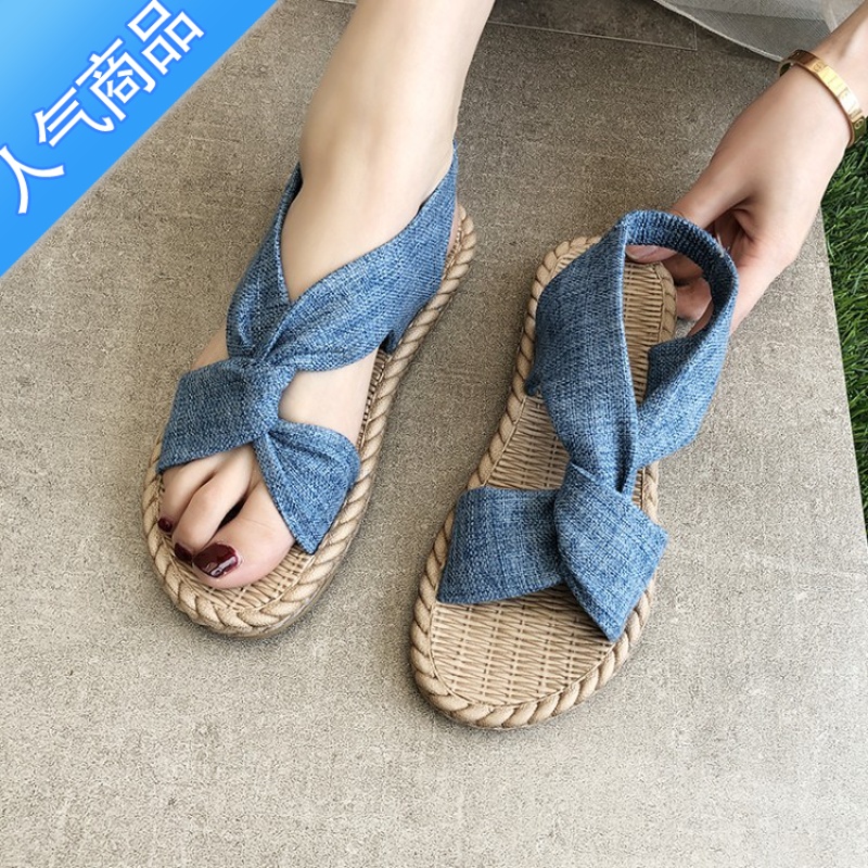 SUNTEK平底外穿凉鞋女2023夏季百搭时尚牛仔布面套脚时尚学生罗马鞋韩版 蓝色 35¥53.82热销中 -