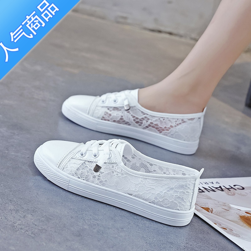 SUNTEK蕾丝小白鞋女夏季浅口网鞋透气网面白色工作鞋网纱凉鞋女2023新款 01白色 40¥104.40热销中 -