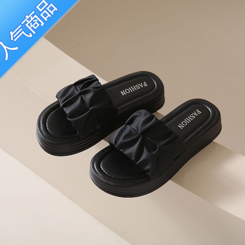 SUNTEK拖鞋女夏外穿2023新款凉鞋晚风高级感高跟厚底增高松糕法式小凉拖 黑色鞋底升级走远路不累脚 39¥90.00热销中 -