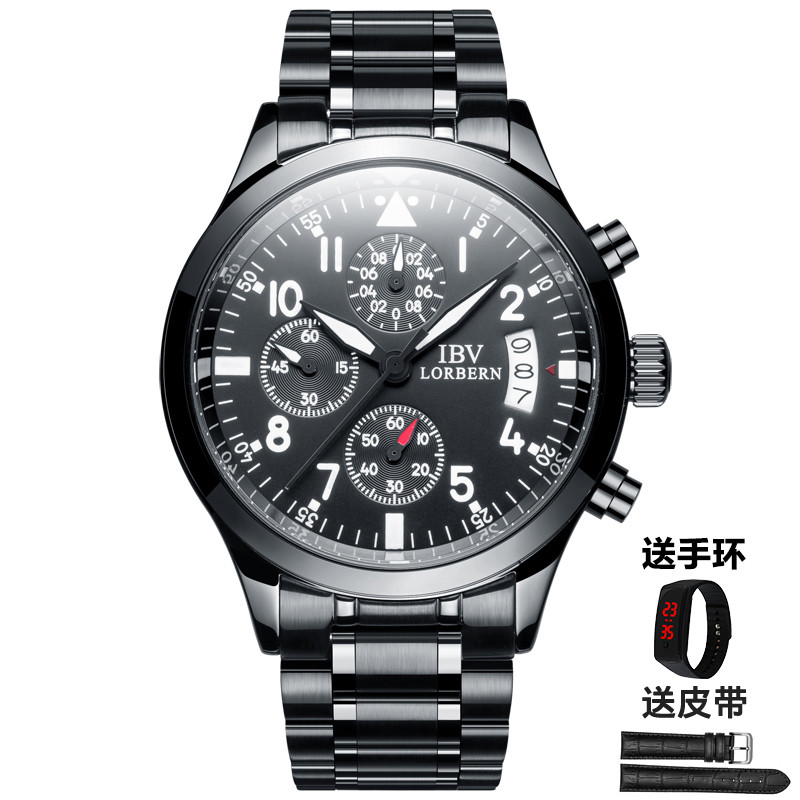 正品嘉年华手表新款石英表 男士休闲时尚全酷黑金属多功能计时男表日历夜光防水潮流腕表运动手表IBV商务系列6001G 全酷黑色¥268.00热销中440评价 98.0%好评 -