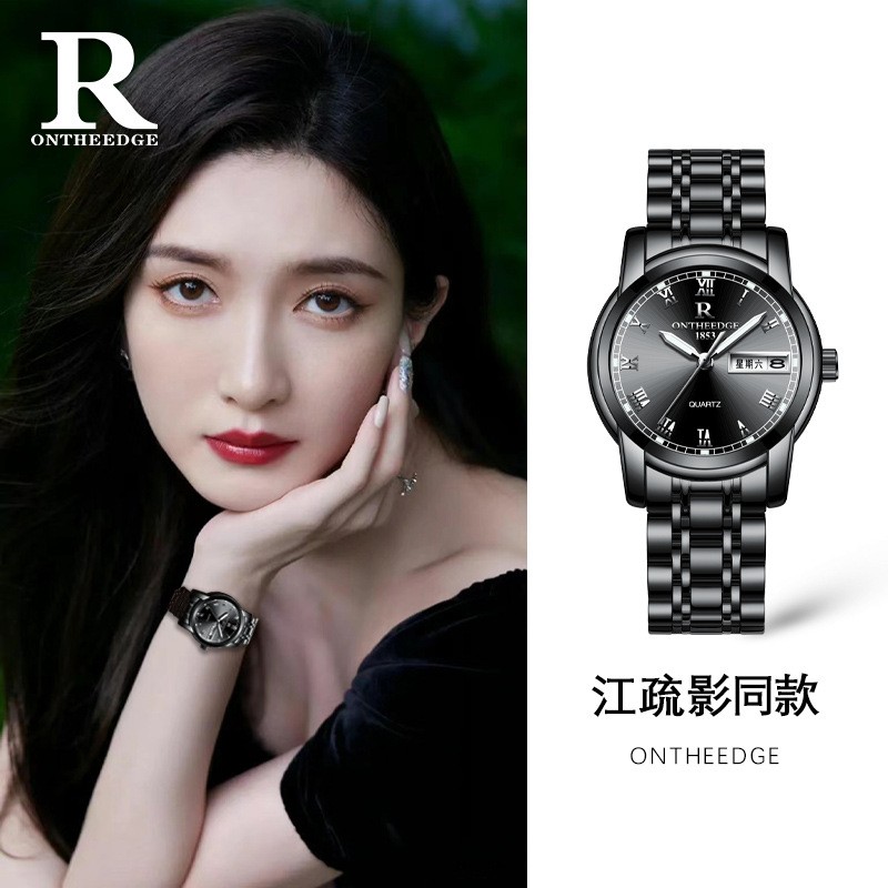 ONTHEEDGE 中瑞手表男防水皮带石英商务男士手表双日历男表学生腕表 白金棕皮带¥136.00热销中 -