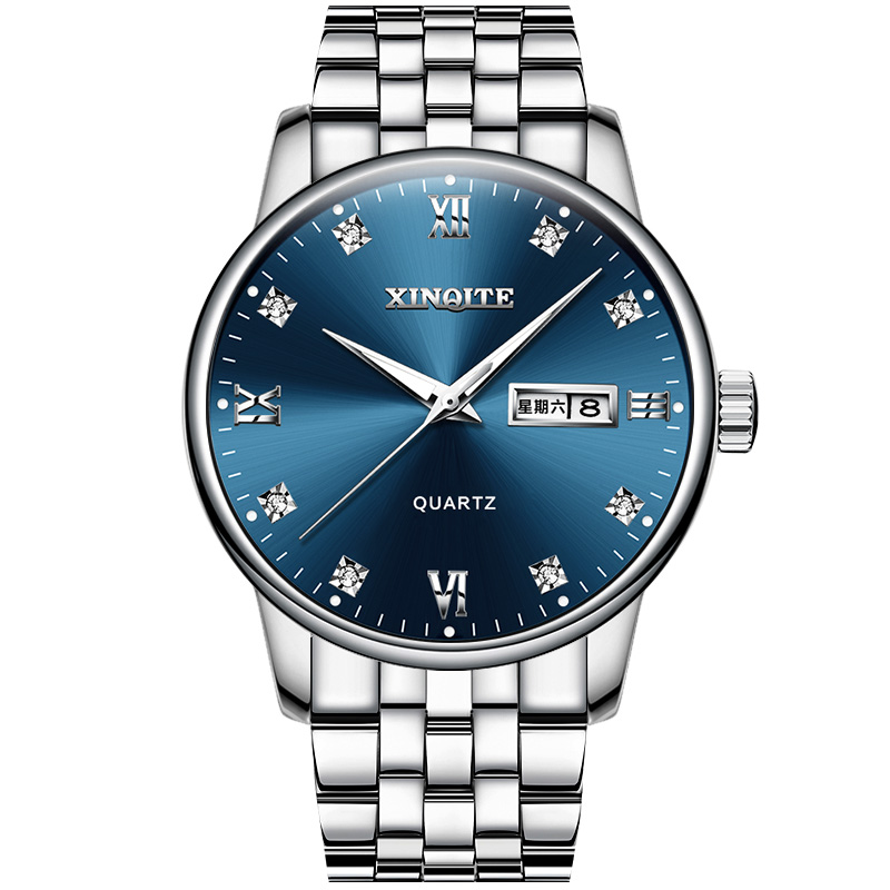 新奇特手表男款钢带商务天王星男士国产品牌时尚休闲学生圆形星期加日历石英表男表防水X-39-2 白钢蓝面¥398.00热销中 -