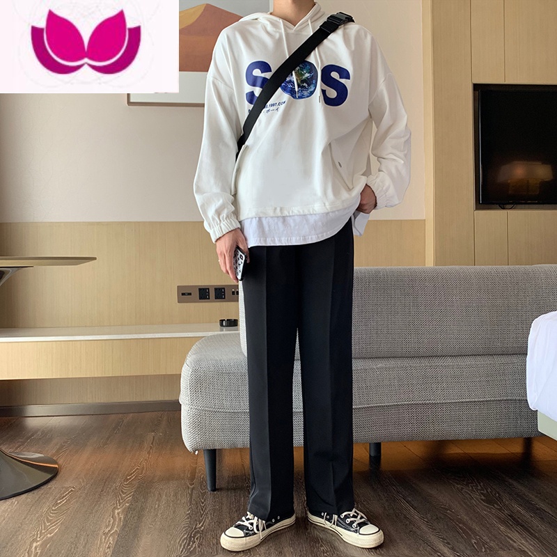 YANXU冰丝垂感休闲裤男宽松直筒速干阔腿长裤子男士夏季薄款2022新款2 M 冰感裤白色平脚¥25.00热销中 -