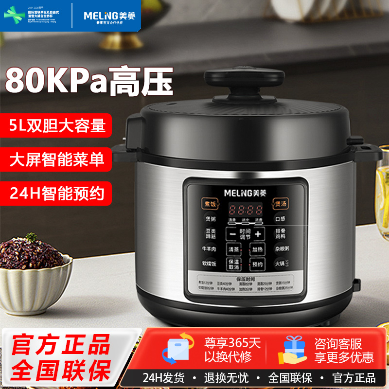 自营 苏宁宜品& 美菱(MeiLing)国风系列家用5L电压力锅双胆全自动智能预约压力锅开盖煲汤/煮粥4~6人电饭锅 黑色5L¥360.00热销中1726评价 99.0%好评 -