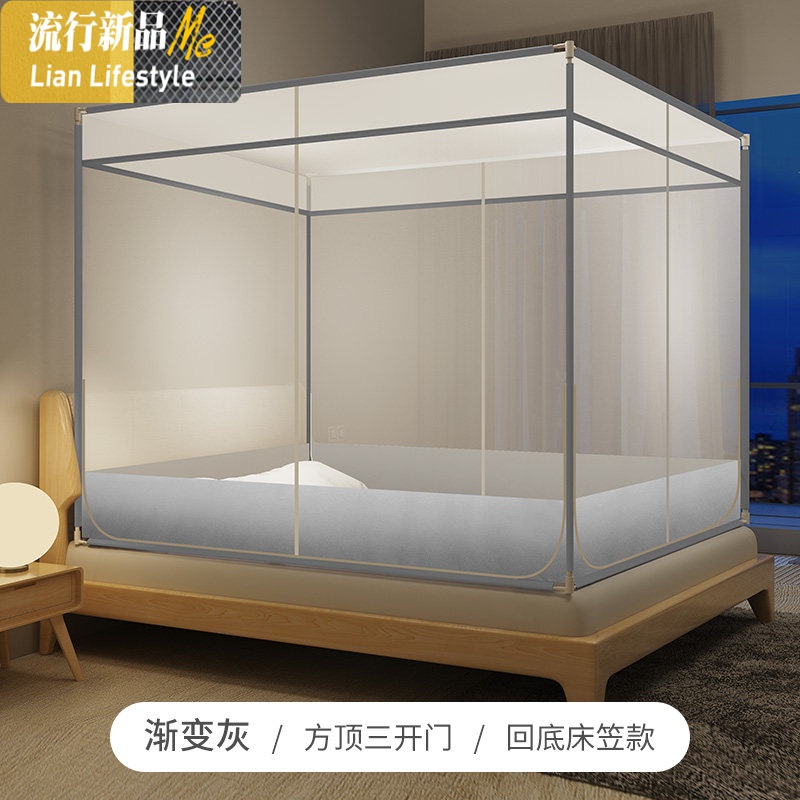 床上蚊帐家用防摔儿童加密加厚方顶拉链1.8m床1.5米2双人支架纹账三维工匠 1.8m(6英尺)床 【渐变灰】防掉床-方顶三开门-回底【顺丰包邮】¥484.00热销中 -