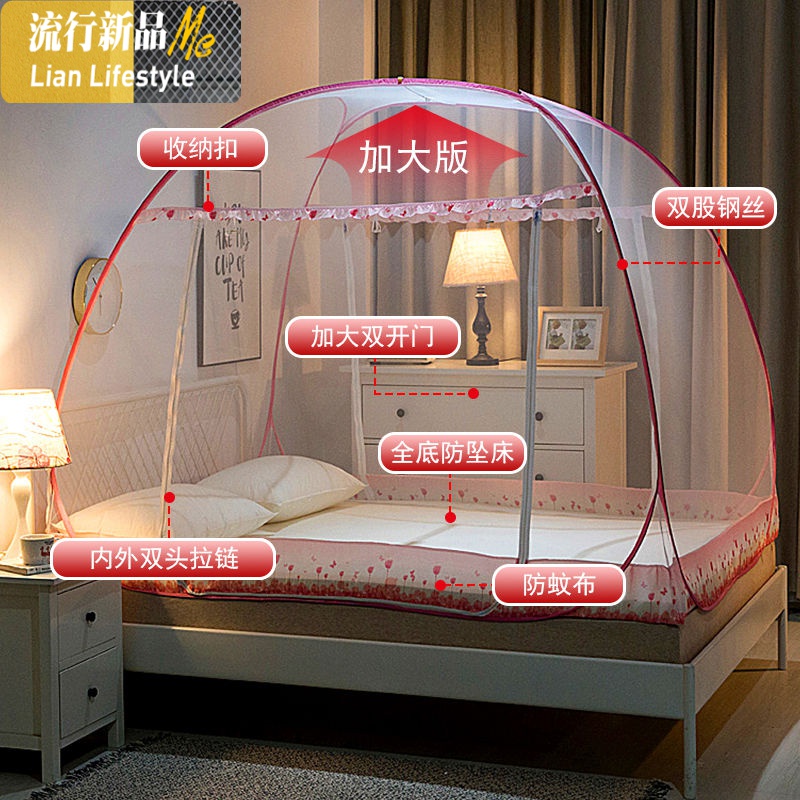 公主风免安装蒙古包蚊帐双人1米5家用1.8m床学生宿舍单人1.2帐子三维工匠_1 1.5m(5英尺)床 少女粉—免安装蚊帐¥250.00热销中 -
