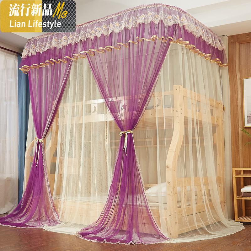 【特密学生宿舍蚊帐】双人家用1.8m子母床上下铺蚊帐单人0.9m三维工匠 1.2m(4英尺)床 蕾丝边淡紫色加密(防尘顶)¥266.00热销中 -