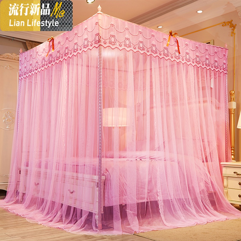 宫廷新款蚊帐加厚四季可用省空间公主风蚊帐床幔冬夏2用_1_937 2.0m(6.6英尺)床 公主粉¥858.28热销中 -