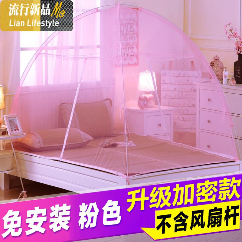 旅游便携免安装蚊帐1m/1.2/1.5/1.8米床学生儿童单人折叠式蒙古包三维工匠_794 1.8m(6英尺)床 粉色免安装加密【无风扇杆】¥71.00热销中 -