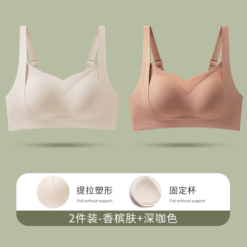 无痕内衣女大胸显小胸聚拢无钢圈调整型上托防下垂运动美背文胸罩 XL适合38/85ABC 2件装更优惠香槟肤+深咖色领券满200用20¥242.00热销中 -