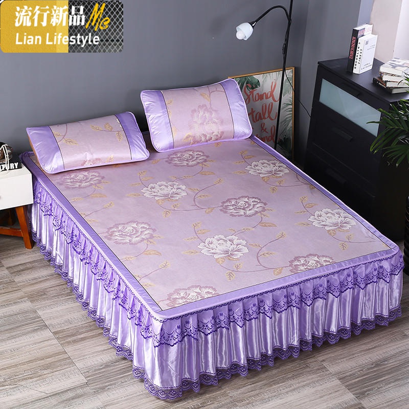 凉席冰丝席床裙两/三件套可拆洗新款蕾丝夏季可水洗折叠空调席子三维工匠 1.8*2.2m床 佳期如梦紫【床裙款】¥317.00热销中 -