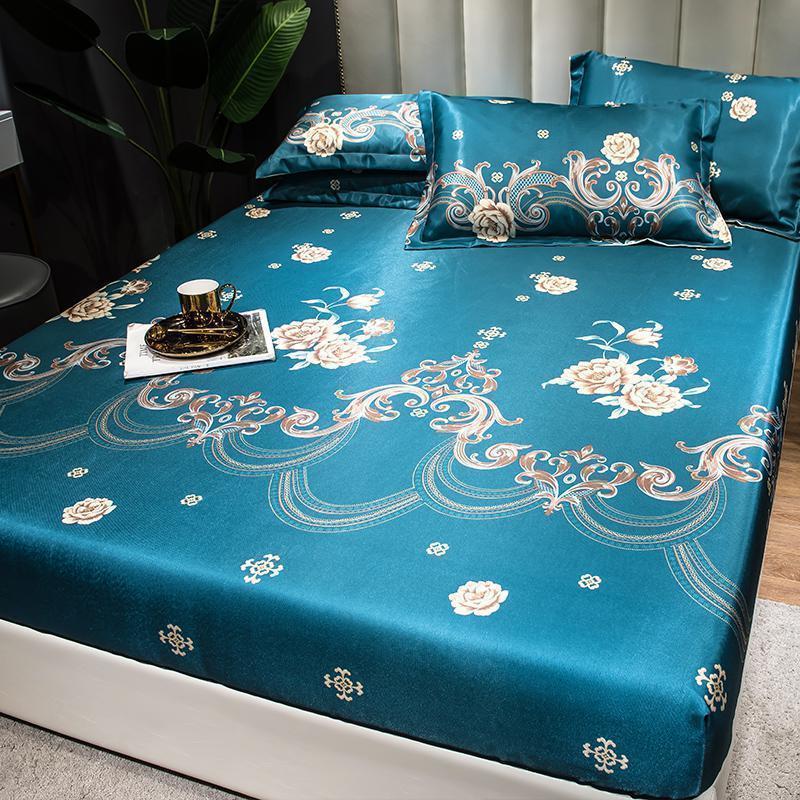 床笠款冰丝凉席三件套1.8m床可水洗折叠夏季1.5米防滑空调软席子_628 1.8m(6英尺)床 金色时光-墨绿¥178.52热销中 -
