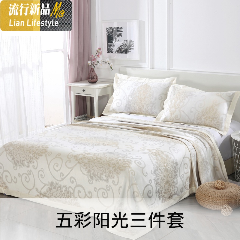 竹纤维软凉席三件套冰丝床单床品1.8m床可水洗机洗折叠夏季空调三维工匠 1.8m(6英尺)床 五彩阳光-加密提花送冰丝毛巾2条¥410.00热销中 -