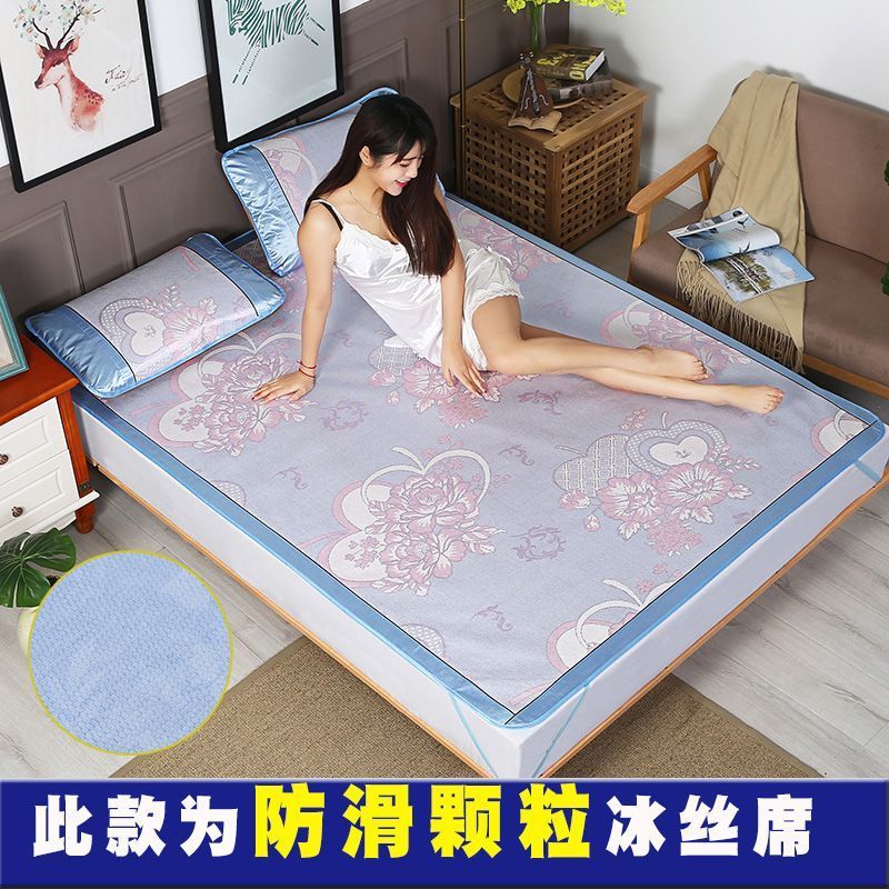 可水洗可折叠冰丝席三件套夏季凉席1.51.8m床单人双人空调软席子_982 1.5m(5英尺)床 床单款冰丝凉席-草莓熊熊¥156.28热销中 -