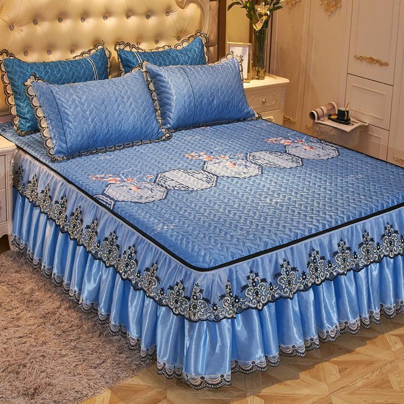 床裙冰丝凉席三件套1.8m床折叠夏天空调席可水机洗床笠床罩软席子_1_566 1.8*2.2m床 MY:蓝絮¥516.52热销中 -