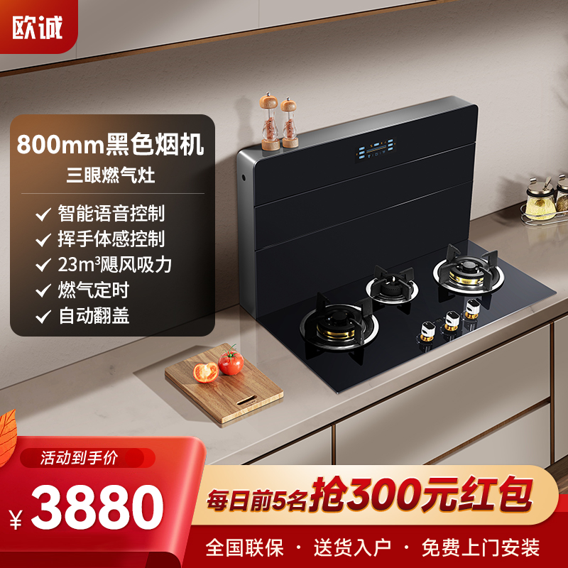 欧诚800mm分体式集成灶家用三眼灶黑色公寓小户型厨房超薄大吸力一体机箱抽油烟机燃气灶套装¥4880.00热销中2评价 100.0%好评