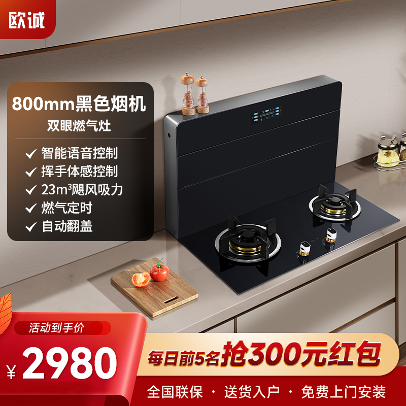 欧诚800mm分体式集成灶家用双眼灶黑色公寓小户型厨房超薄大吸力一体机箱抽油烟机燃气灶套装¥3980.00热销中2评价 100.0%好评