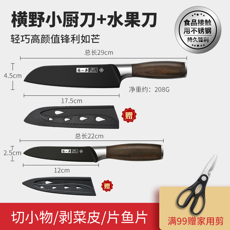 张小泉水果刀家用官方旗舰店正品不锈钢瓜果小刀具厨房专用削皮刀8138 水果刀+小厨刀【送水果板+削皮刀】¥104.00热销中