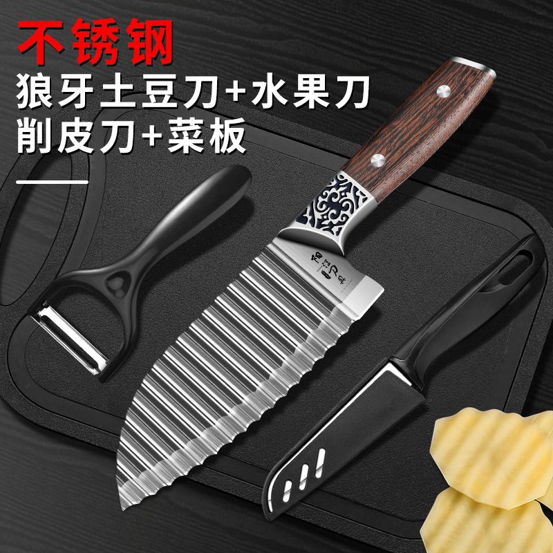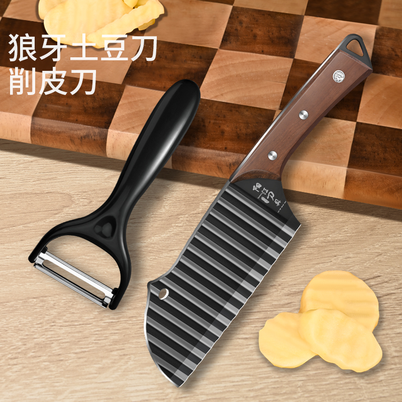 花式薯条刀多功能锋利波纹狼牙土豆刀具厨房家用波浪菜刀P8169 【304】黑面土豆刀+瓜刨¥20.90热销中 -