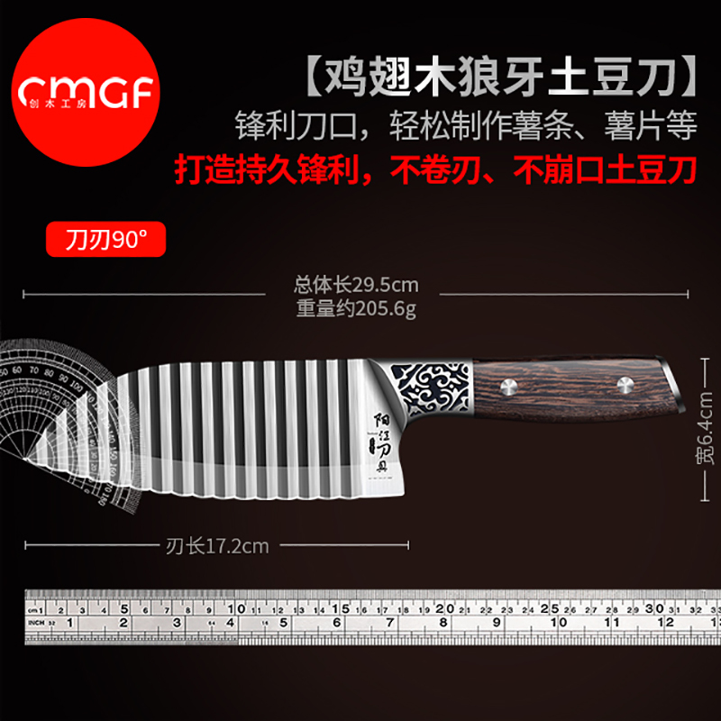 德国狼牙土豆刀具波纹刀304不锈钢切菜神器多功能刀8177 304鸡翅木薯条刀+面包夹¥44.90热销中 -