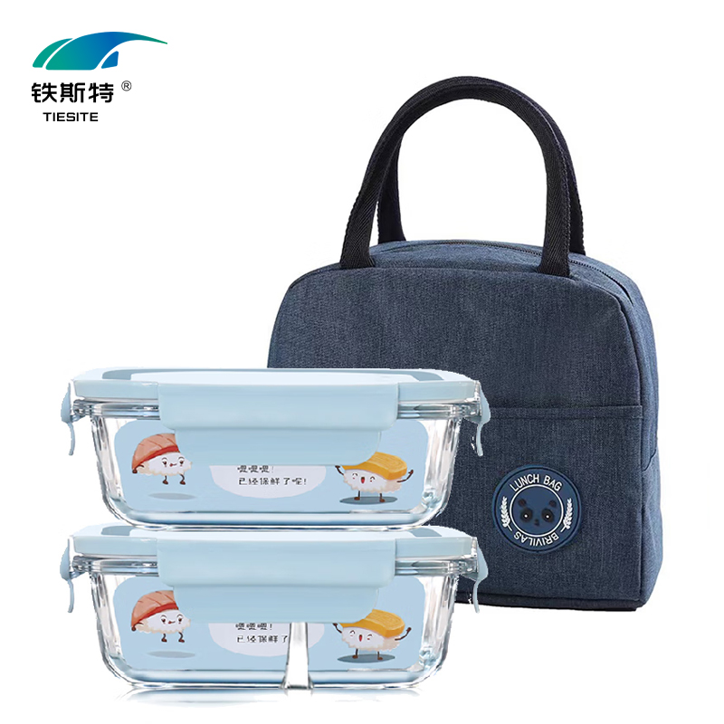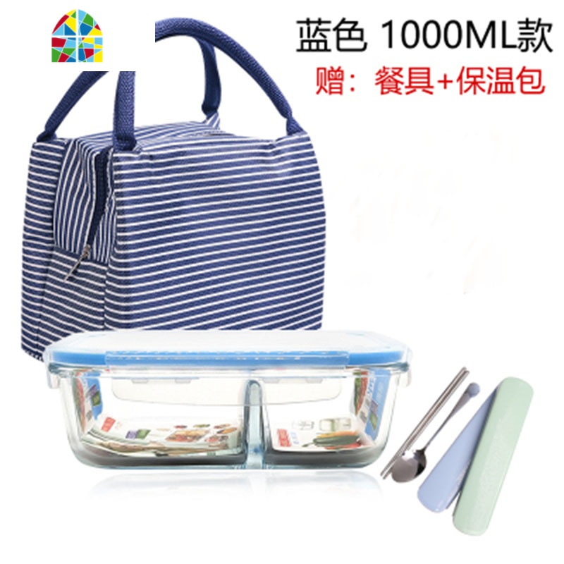 耐热玻璃饭盒微波炉加热便当盒分隔保鲜盒上班族大号带餐具FENGHOU 蓝色1000ML餐具+餐袋¥65.00热销中 -