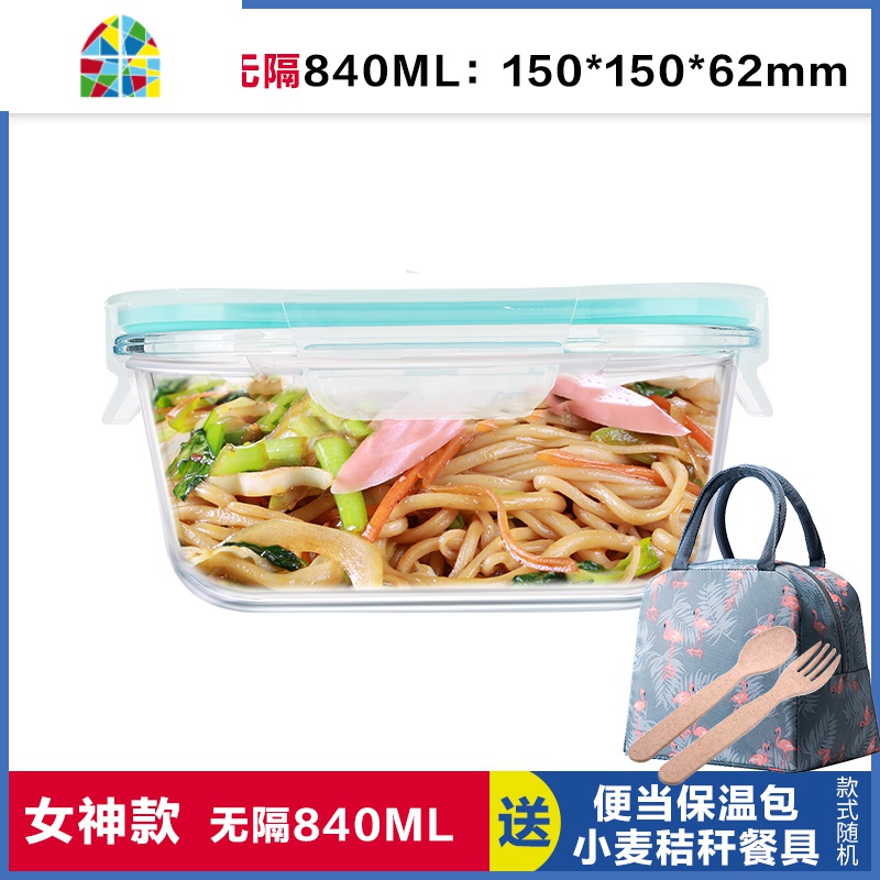 正方形玻璃饭盒便当盒微波炉专用保鲜盒冰箱收纳盒碗840MLFENGHOU 带孔无隔白正840ML,赠保温包+餐具¥37.00热销中 -