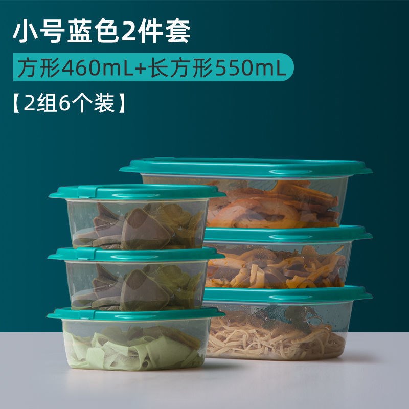 茶花保鲜盒食品级冰箱专用可微波加热家用塑料密封水果食品收纳盒 小号方形+小号长方形/蓝色领券满39用1¥39.90热销中 -