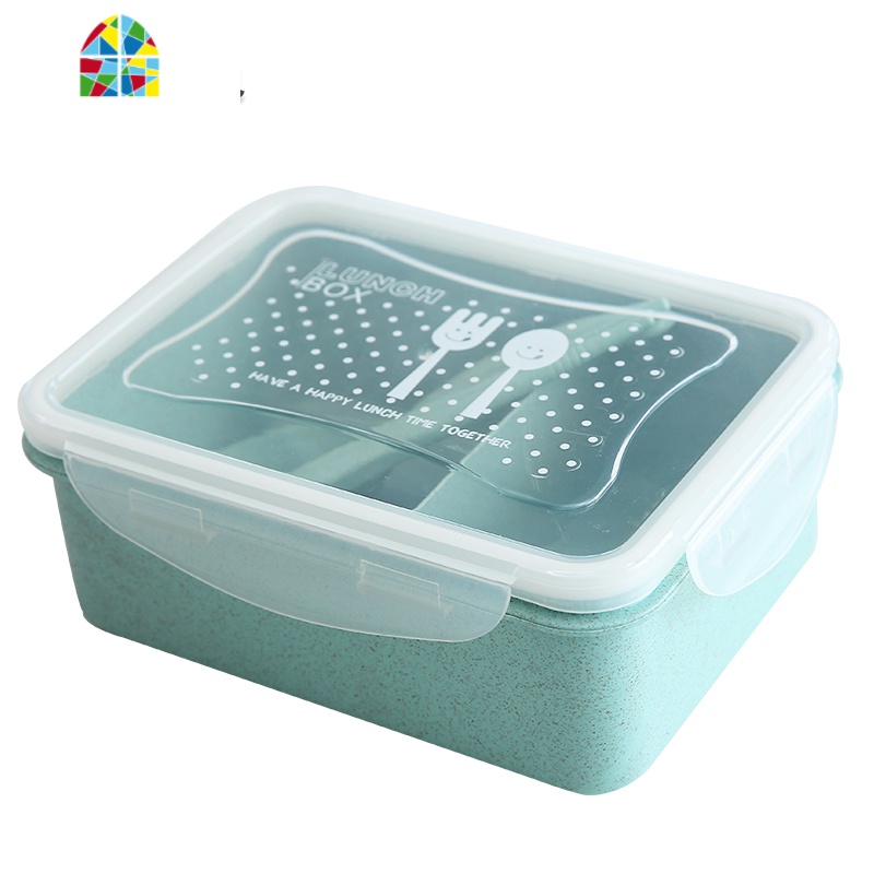 饭盒便当盒微波炉密封塑料学生带盖韩国食堂简约日式分格保鲜餐盒FENGHOU 双格北欧绿送筷勺¥17.00热销中 -