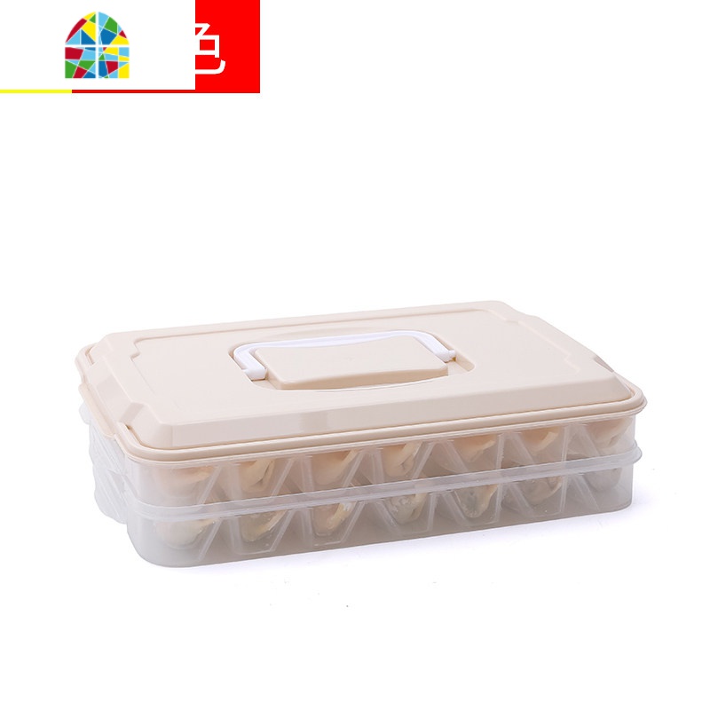 家用饺子盒冻饺子冰箱速冻水饺盒馄饨专用密封保鲜收纳盒四层托盘FENGHOU 2层米色¥25.00热销中 -