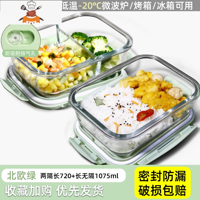 敬平上班族玻璃饭盒学生可微波炉加热专用碗分隔型餐盒保鲜盒便当盒格 北欧绿-2隔720ml+长无隔1075ml¥37.62热销中 -