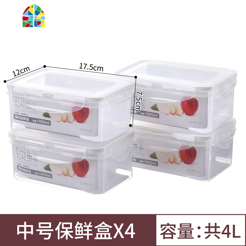 冰箱收纳盒家用冷冻密封微波食品塑料储物盒加厚保鲜盒套装饭盒FENGHOU 白色盖1000ML四个装¥36.00热销中 -