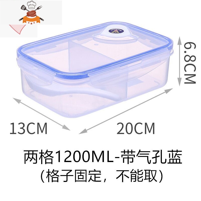 敬平保鲜盒塑料食品盒微波家用密封便当分格饭盒子冰箱收纳简约长方形 两格1200ML-带气孔蓝色¥20.68热销中 -