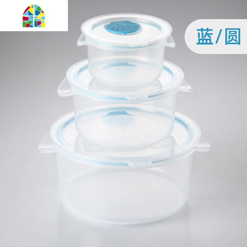 3个装食品级保鲜盒家用密封盒塑料微波炉饭盒冰箱收纳水果储物罐FENGHOU 蓝色圆形三件套¥46.00热销中