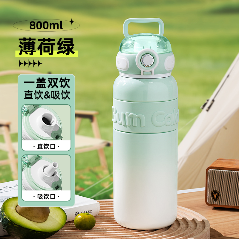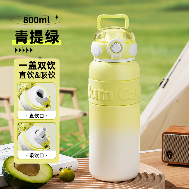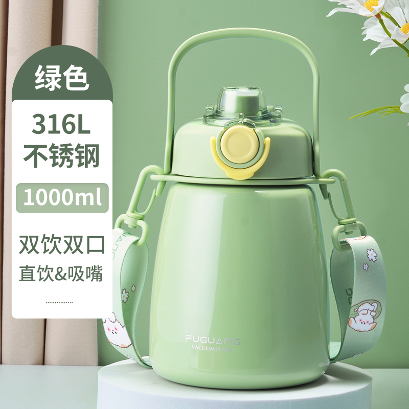 富光大肚保温杯女士款大容量316L食品级不锈钢正品儿童水杯高颜值 绿色1000ml双饮双口+316L不锈钢内胆+背带 均码¥89.00热销中